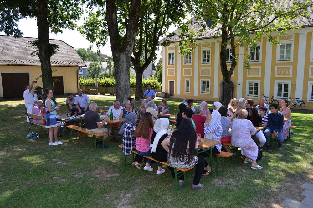 Der Einladung unter dem Titel „ÖsterreicherInnen begegnen Menschen aus nah und fern“ waren rund 75 Menschen gefolgt, die sich bei herrlichem Wetter im Schatten des Pfarrgartens bei Kuchen und guter Musik unterhielten. Das Besondere: Von 0 bis 70 Jahren und von Paraguay über Österreich bis Afghanistan sowie von Frankreich bis Nigeria waren verschiedenste Nationen und Altersgruppen vertreten. Auch eine Gruppe BewohnerInnen des Betreuten Wohnens der Caritas in Andorf folgte der Einladung.