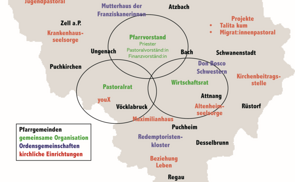 Aus dem Dekanat Schwanenstadt wird in Zukunft die Pfarre Hausruck-Ager. Im Zuge dieser Umstellung wurden auch die Zuständigkeiten der Seelsorgerinnen und Priester neu geordnet. In einer Klausur am 20. Und 21. Mai wurde dies besprochen und geklärt.